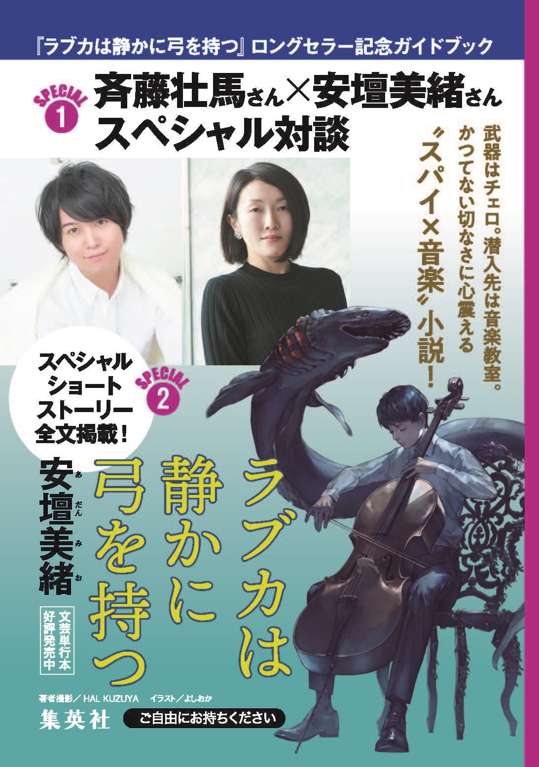 斉藤 ありがとうございます。『ラブカ』を読んでいたときは、いい文章ってどういうものだろうと思い悩んでもいた時期で。聞こえのいい音色で本人の気持ちいいテンポでしゃべっているからといって、聞いた人の心を動かす芝居にはならないというのと同じで、演奏も文章も、創作の根源には率直に自分と向き合う心が必要なのだなとあらためて思いました。これは安壇さんの前作『金木犀とメテオラ』にも、作風の違いはあれど、通ずるものを感じます。実をいうと、声優よりも先になりたいと思った職業が小説家なので、声優の道を歩んできた今、機会をいただけたのは御褒美のようなものだなと捉えていて。芝居と音楽、文学が融合したような表現を、自分なりに探っていきたいと考えています。本日はとても素敵な時間をありがとうございました。